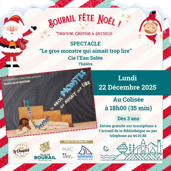 La Mairie de Bourail vous offre le spectacle "Le Gros Monstre qui aimait trop lire" de la compagnie l'Eau Salée !