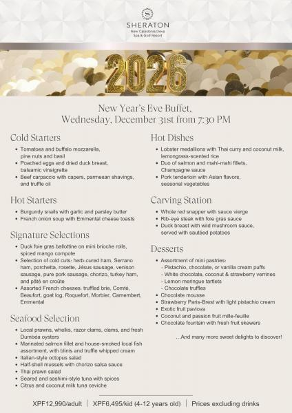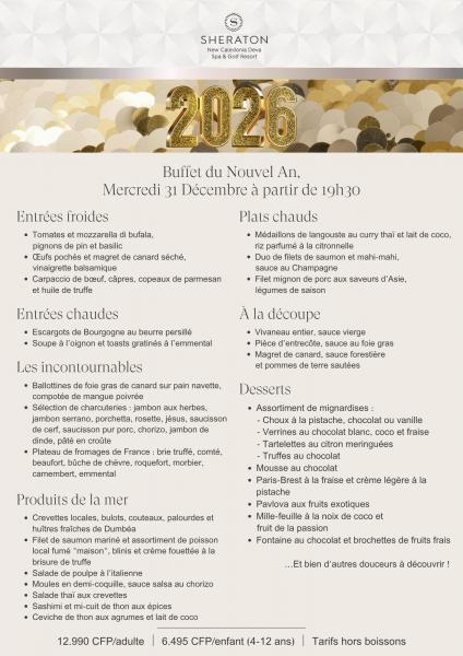 - A partir de 19h30 : Buffet du Réveillon de la Saint-Sylvestre au Reef restaurant